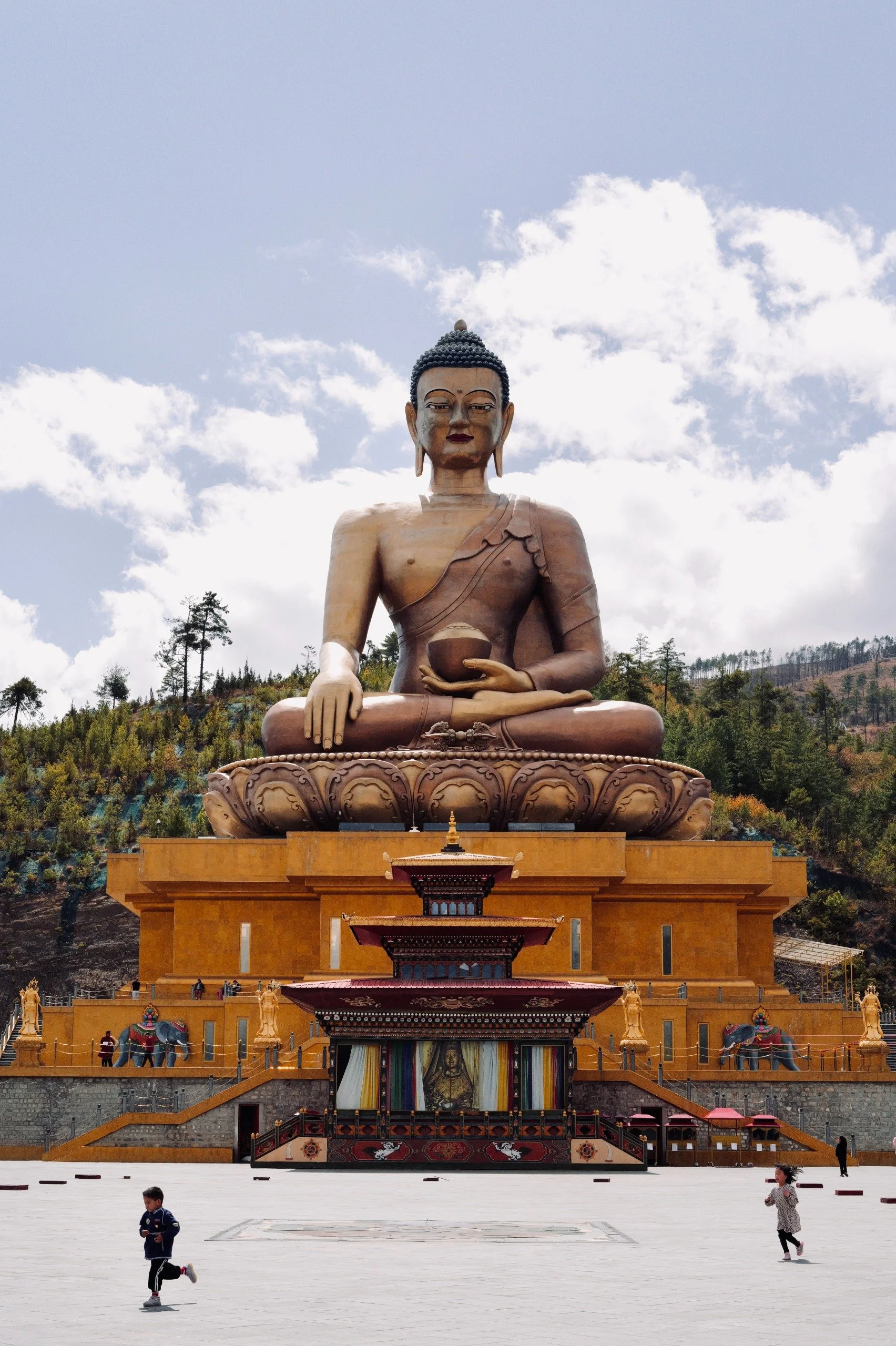 After a fantastic lunch at Amankora (and maybe a well deserved nap), pay a visit to the majestic Buddha Dordenna statue - The first impact with Bhutan’s Buddhism is striking as this recent, 54-meters tall bronze and gold statue sits on top of a dramatic series of flights of stairs.
