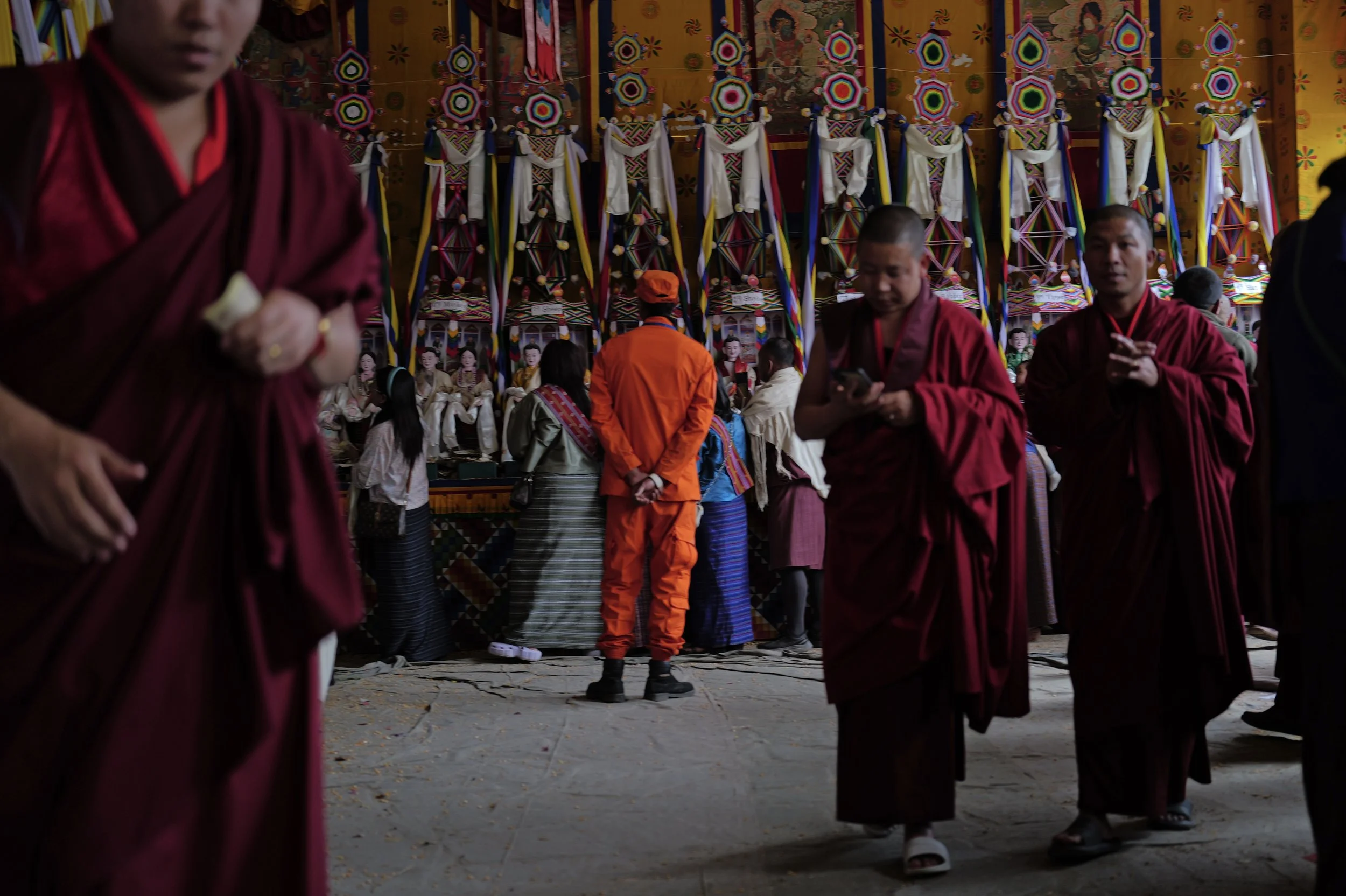 In the afternoon, you can either go back to the hotel to relax or keep going and visiting. We decided to visit the beautiful 16th Century Pangri Zampa Monastery. Here we witnessed one of the most incredible scenes of the trip: a yearly celebration called Jana Chido, an offering organized by the Panri Zampa School of Astrology to fight misfortunes and to have peace in the Country. It takes place every year for nine days in April. Locals, all dressed in traditional clothes, would line up for hours to have a chance to participate.